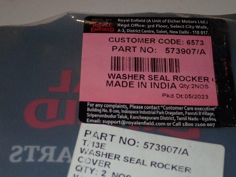 This genuine spare part is a rubber washer used to seal the rocker cover on various Royal Enfield motorcycle engines to prevent oil leaks.